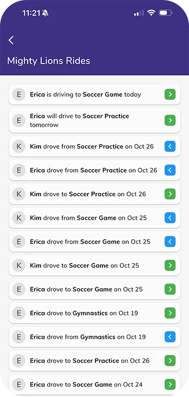 Maintain balance and fairness in your carpool with Kid Hop's comprehensive history tracking feature, designed to give visibility into everyone's contributions: